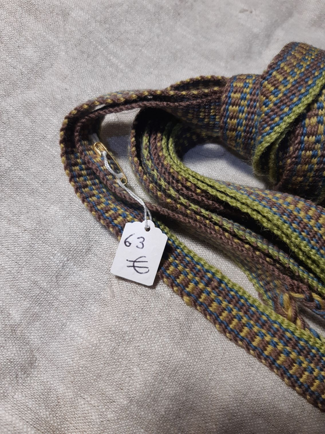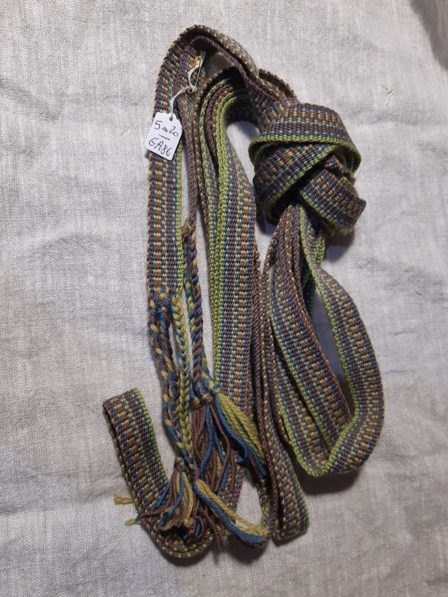ceinture-galon tissée à la main, 1,5cm de large, 5m20 de long, finition tressée.