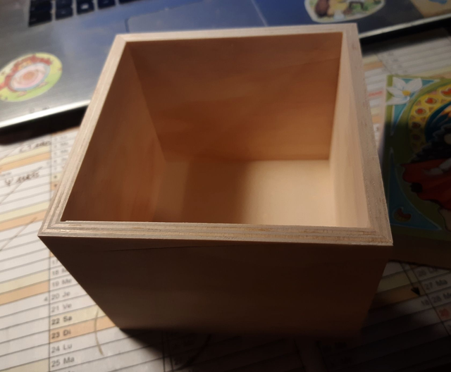 12cm x 12cm x 12cm boîte en pin, peinte à la main, vernis.